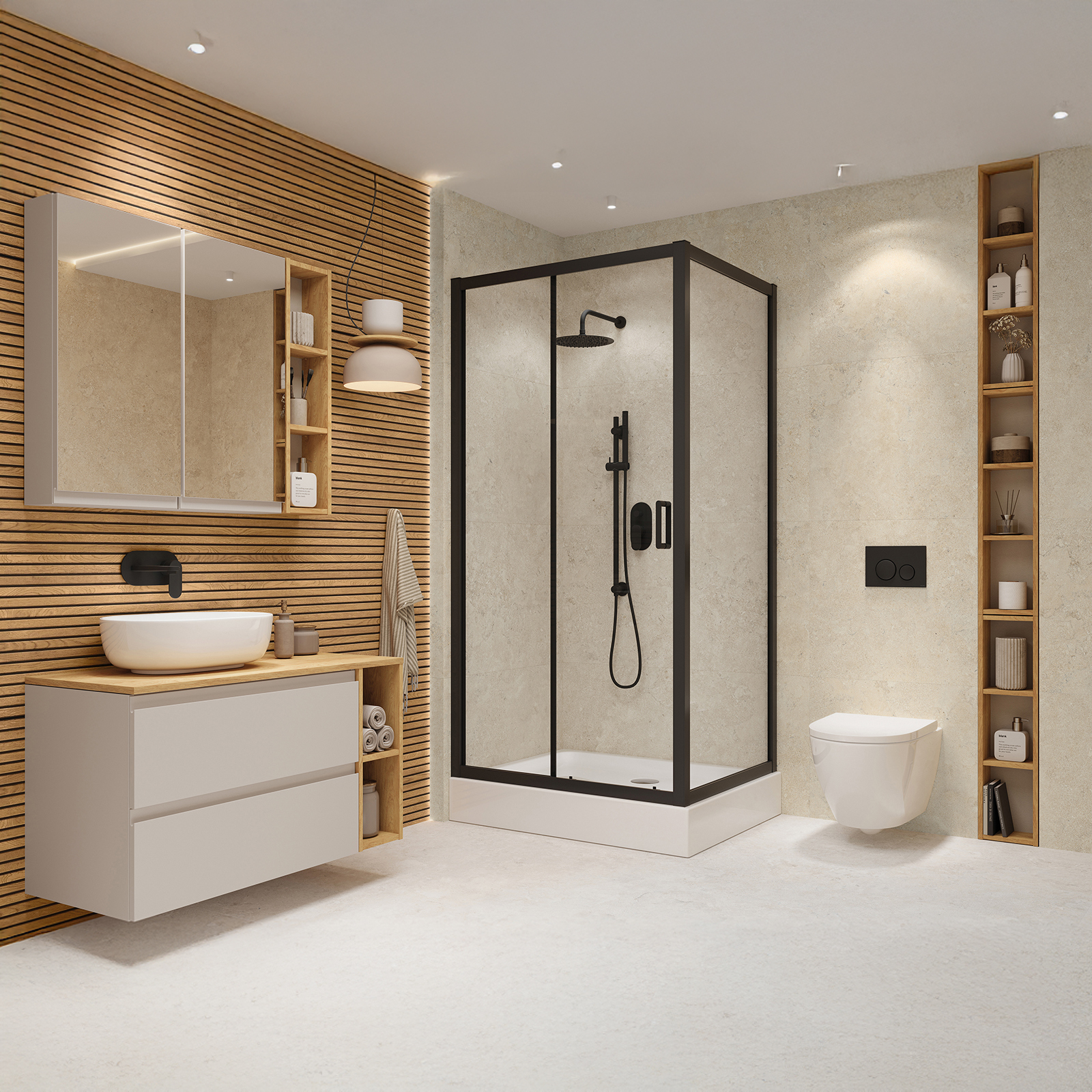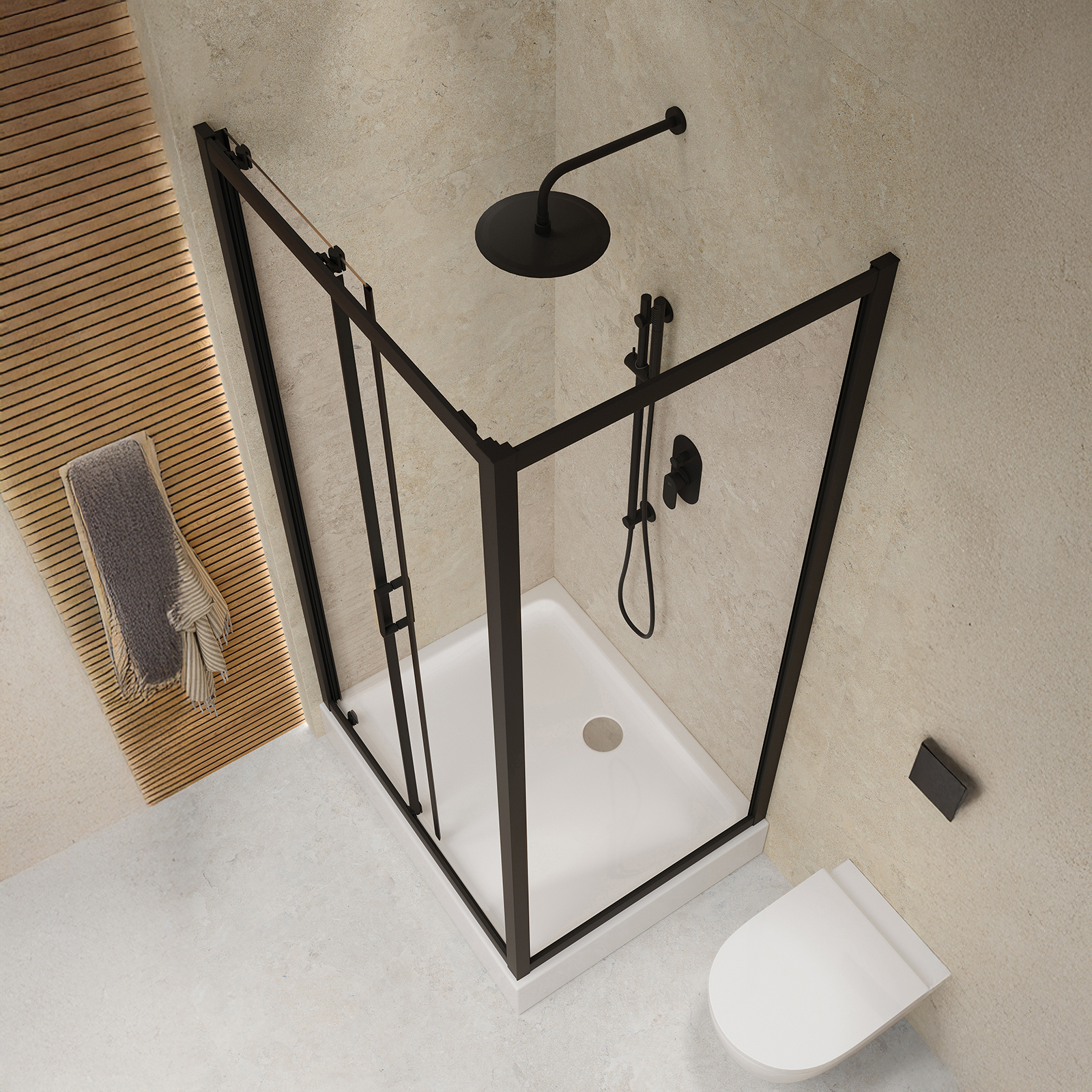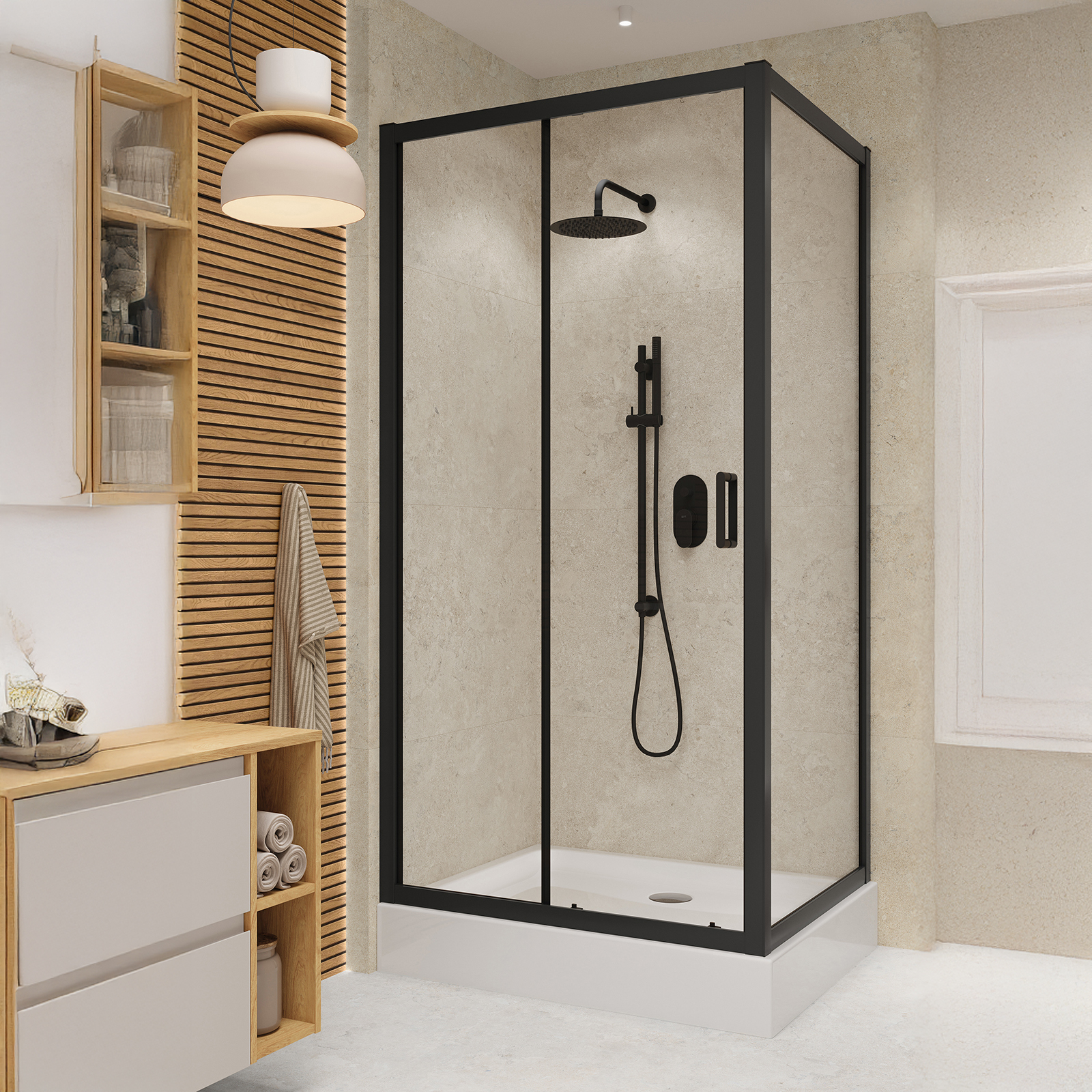 Kabína ARTECO je vyrobená z 5 mm hrubého tvrdeného bezpečnostného skla, ktoré zaručuje stabilitu konštrukcie a bezpečnosť používania. Sklo je vybavené ochranným vodoodpudivým povlakom CleanPro, ktorý účinne zabraňuje tvorbe vodného kameňa a špiny, čo uľahčuje udržiavanie čistoty kabíny. Kabína používa systém posuvných dverí s dvojitými chrómovými valčekmi hore a dole, čo zabezpečuje plynulé otváranie a zatváranie dverí. Funkcia rýchleho uvoľnenia spodných valčekov vám umožňuje jednoducho odstrániť dvere kabíny. Kabína je tiež vybavená funkčným profilom steny, ktorý sa prispôsobuje nerovnostiam stien až do 15 mm. Obojstranné rukoväte z kvalitného kovu kombinujú odolnosť a funkčnosť. Obdĺžniková rohová kabína, vysoká 190 cm, s dverami širokými 120 cm a stenou širokou 90 cm, s priehľadným sklom. Profily čierne. Kabína je navrhnutá tak, aby sa dala nainštalovať s vanou alebo priamo na podlahu. K dispozícii je široká škála lineárnych odtokov a sprchových vaní v rôznych farbách a výškach na dokončenie sprchového priestoru, čo umožňuje slobodu konfigurácie. Dvere kabíny môžu byť namontované doľava alebo doprava. Vysoká kvalita produktu je potvrdená dlhodobou zárukou.