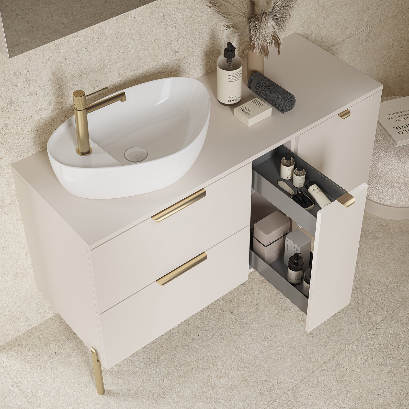 Inovatívnou vlastnosťou kolekcie je možnosť vybrať si otvárací systém: klasické mäkké zatváranie s rukoväťou alebo moderné tlačenie na otváranie.