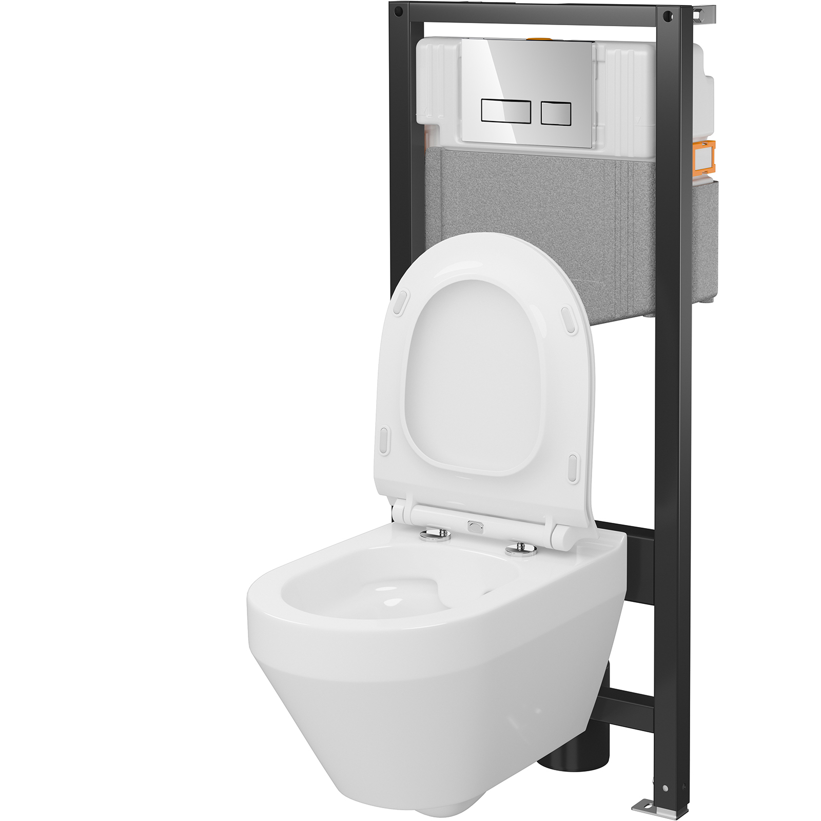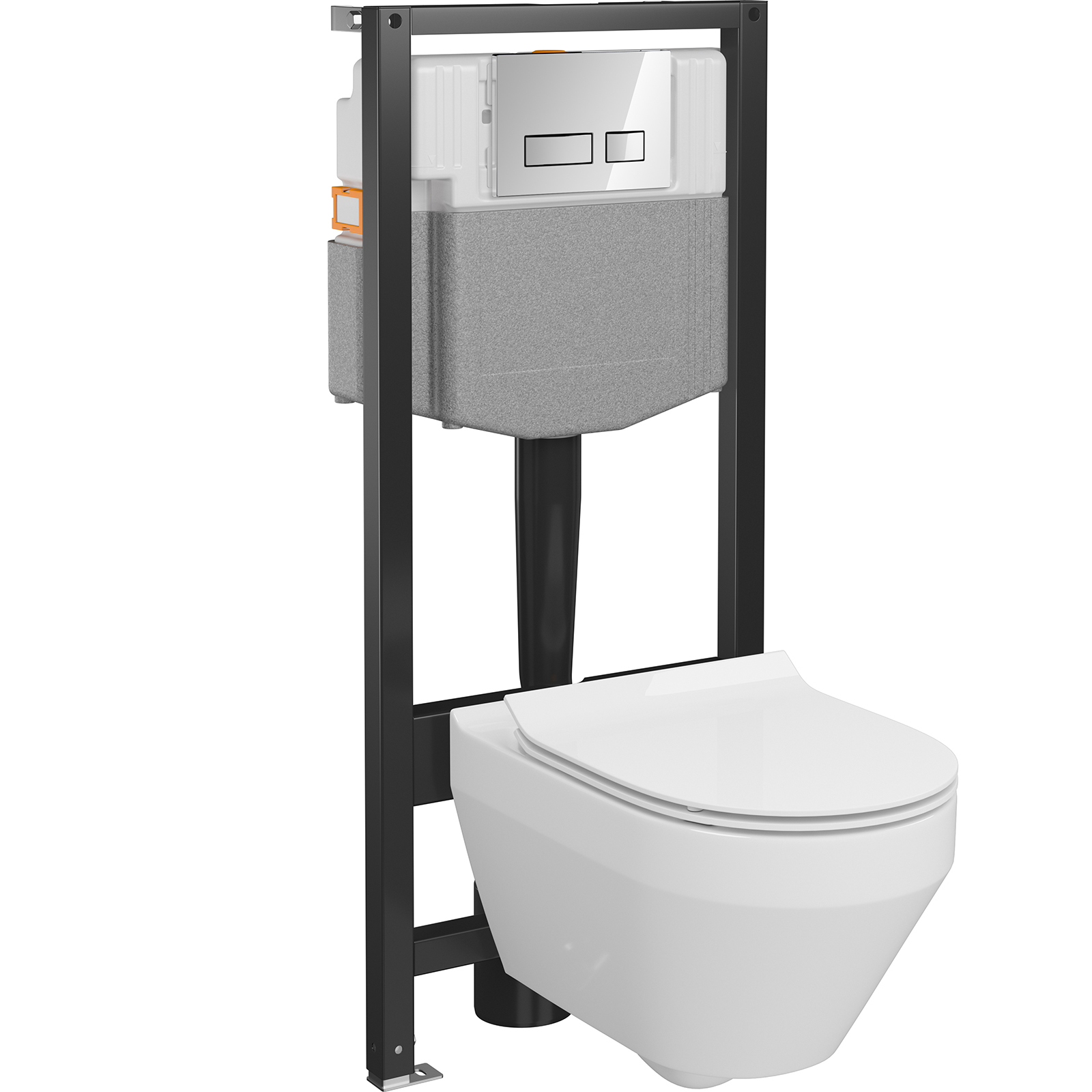 Suchostennáskrytá splachovacia nádržka Mechanical 50 je vybavená viacerými funkčnými riešeniami, ktoré uľahčujú a urýchľujú montáž: brzdy v pätkách splachovacej nádržky, otočné nožičky, odtokové koleno so štvorstupňovým nastavením hĺbky, označenie 1 m na uľahčenie určenia výšky zavesenia misy a farebné označenie na uľahčenie montáže splachovacej nádržky. Nádrž rámu bola vyrobená modernou technológiou vyfukovania - jednodielna konštrukcia z odolného plastu zaručuje tesnosť a bezpečnosť počas dlhoročného používania. Nastavenie množstva splachovacej vody a možnosť zmeny dynamiky prúdu vody na mechanickom vypúšťacom ventile, ultra tichý plniaci ventil, polystyrénová izolácia okolo nádržky alebo FRESH SYSTEM, špeciálny kôš na osviežujúce kocky, ktorý zaručuje dlhšiu hygienu. Závesná misa je vybavená inovatívnou technológiou CleanOn. Vďaka tejto technológii voda účinne umýva všetky vnútorné povrchy misy a toaleta zostáva dlhšie čistá a hygienická. To, čo závesnú misu odlišuje, je moderný dizajn, systém skrytej inštalácie. Misa je navrhnutá na úsporné splachovanie 3/5 l vody.