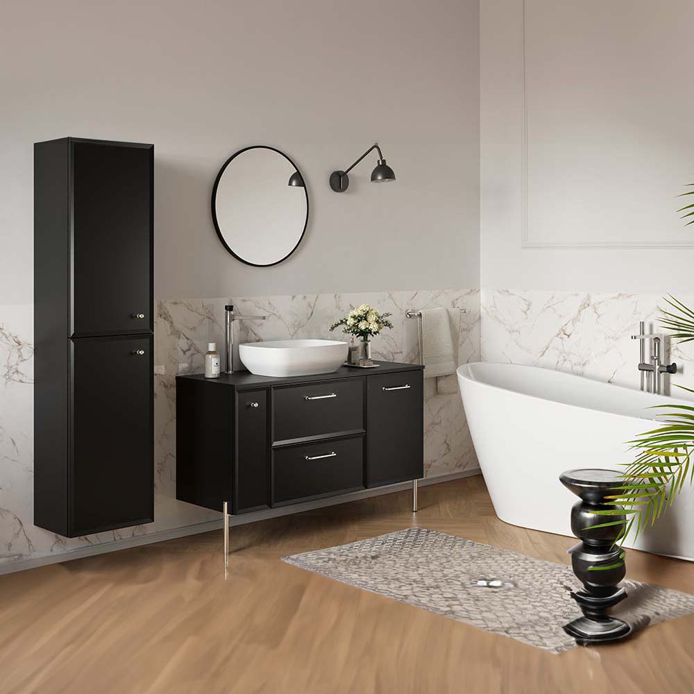 Kolekcia MILOS by Cersanit je kvintesenciou klasiky a štýlu, stvorená pre milovníkov elegantných interiérov. Je ideálny do priestranných kúpeľní, kde sofistikovaný dizajn ide ruka v ruke s estetikou a funkčnosťou. Zlaté, strieborné alebo čierne nábytkové doplnky, ktoré dokonale ladia s čelami v odtieňoch čiernej, vytvárajú harmonický a štýlový celok. Každý detail tejto kolekcie zdôrazňuje elegantný charakter interiéru a dodáva mu jedinečný šarm. Kolekcia MILOS by Cersanit zaujme elegantnými a nadčasovými farbami, ktoré dokonale ladia s moderným a klasickým dizajnom interiéru. Čierna je synonymom luxusu a elegancie, dodáva interiéru charakter a dokonale ladí s kontrastnými prvkami.