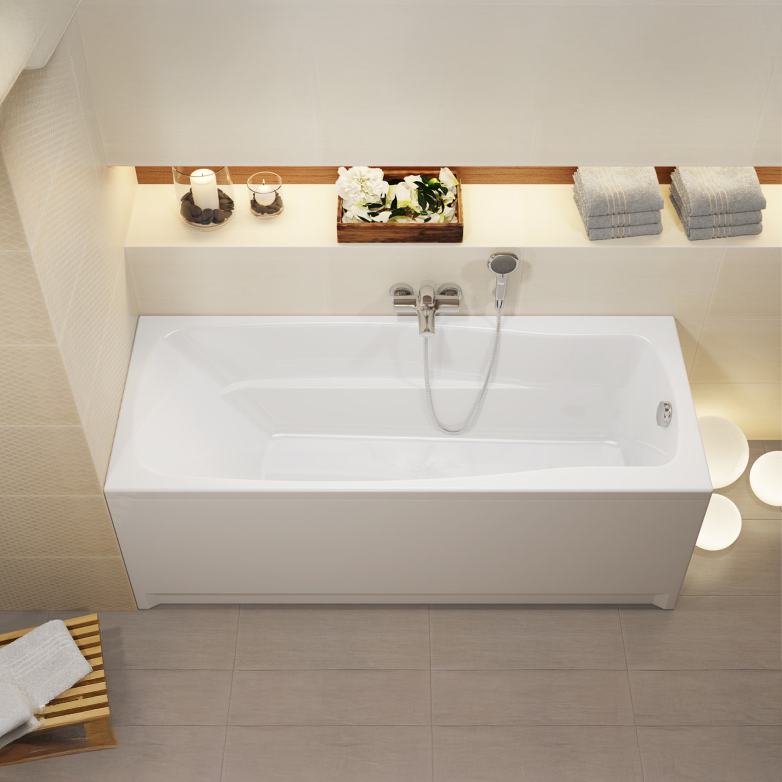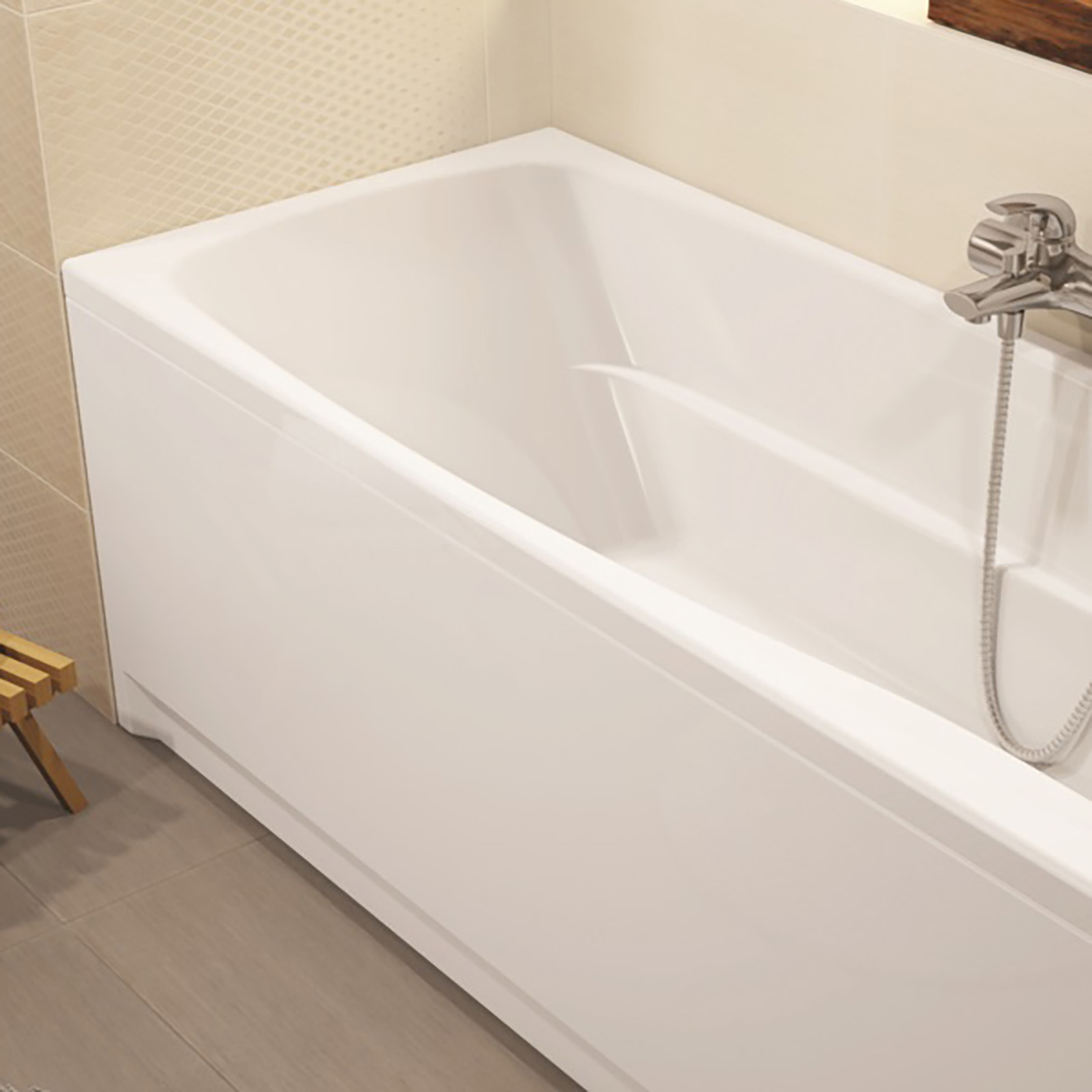 Obdĺžniková vaňa LANA 150 má pohodlný, univerzálny tvar a priestor pre batériu. Pohodlie pri kúpaní zaisťuje vnútro s tvarovaným, mierne skloneným operadlom a praktickými lakťovými opierkami. Model má rozšírené okraje, ktoré možno použiť ako podstavec pre kozmetiku potrebnú počas kúpania. Dodávané nastaviteľné nohy umožňujú inštaláciu v akejkoľvek výške. K modelu je možné dokúpiť doplnky - kryt a zástenu.
