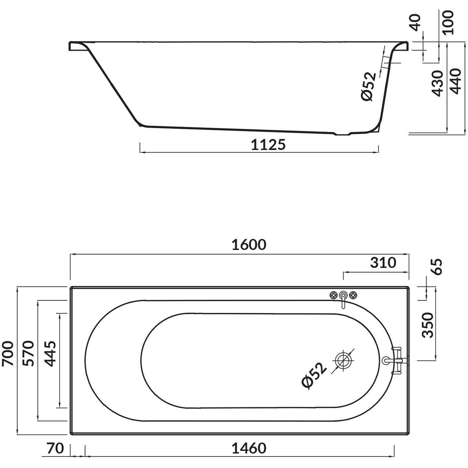 | Umiestnenie odtoku vody z vane: | Bočný odtok na kratšej strane |