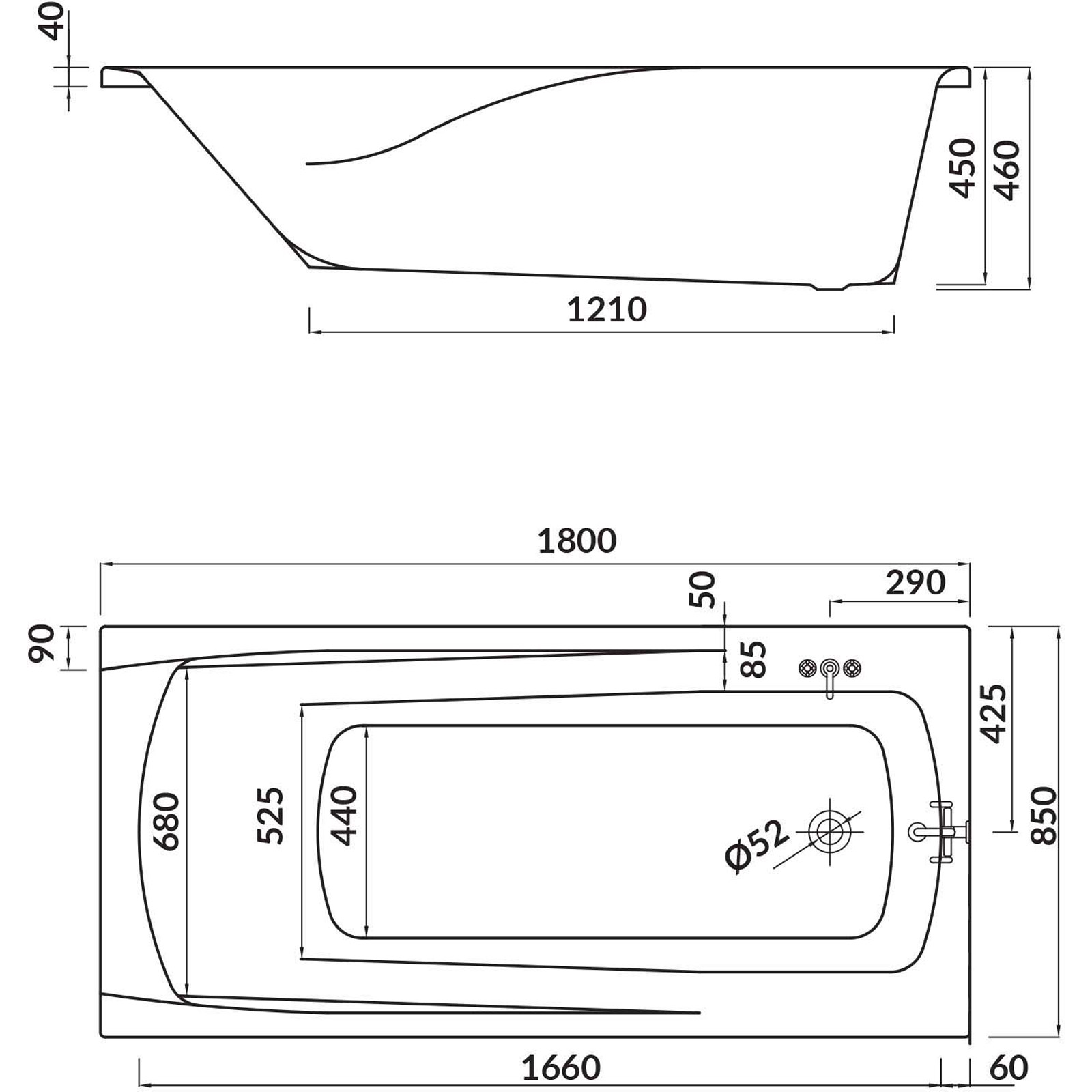 - priemer odtoku: 52 mm