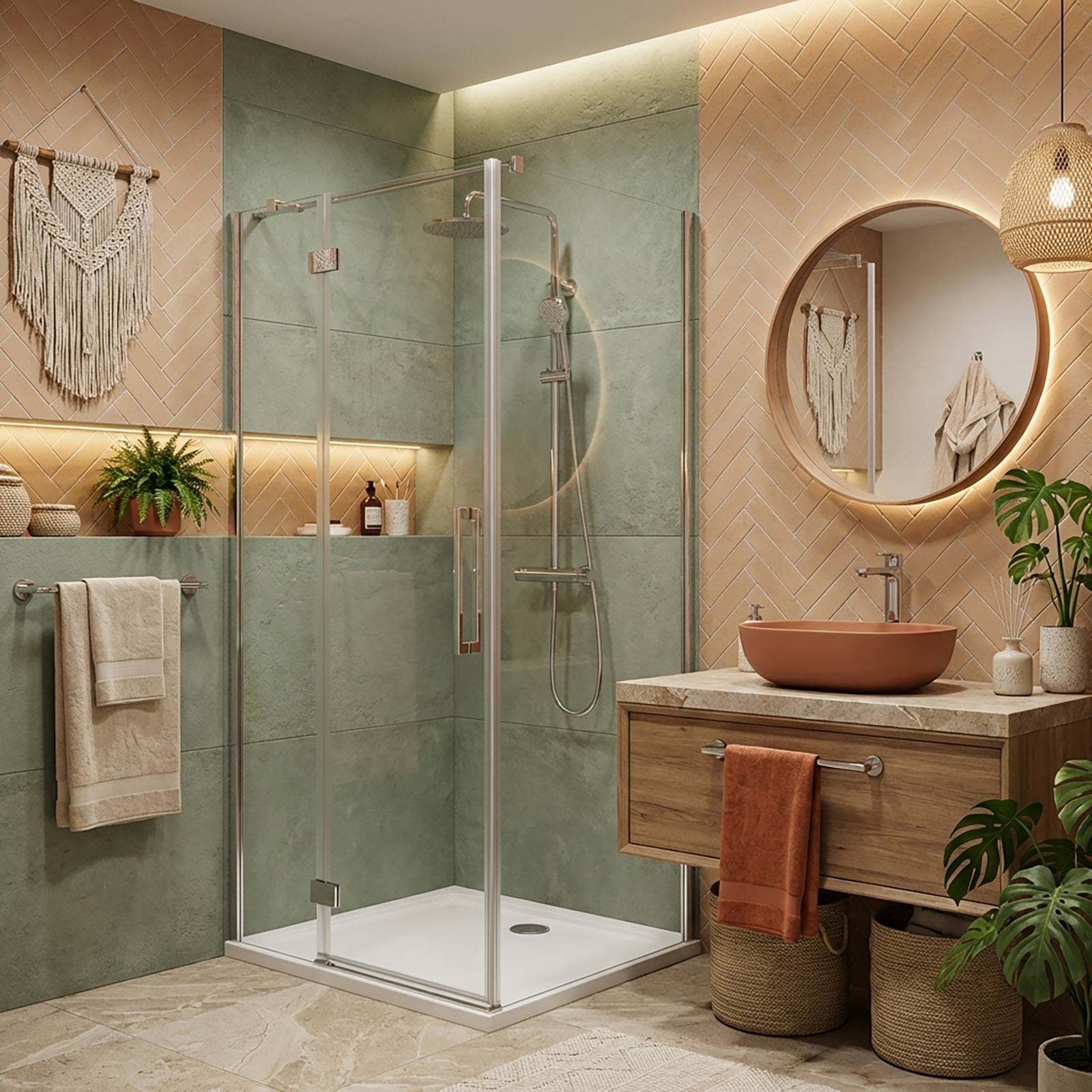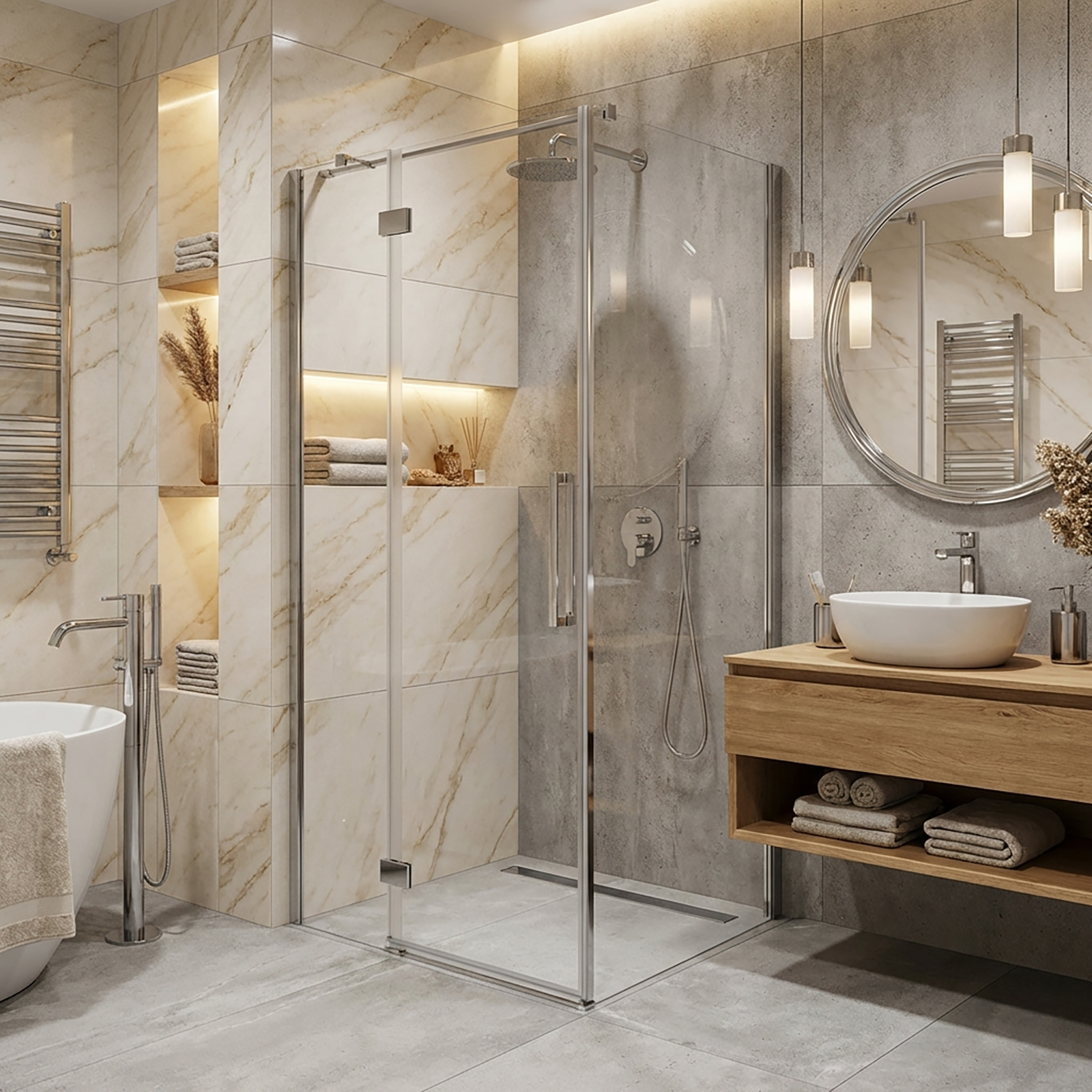 Sprchový kút CREA je vyrobený z bezpečnostného tvrdeného skla s hrúbkou 8 mm, ktoré zabezpečuje stabilitu konštrukcie a zaručuje bezpečné používanie. Sklo je vybavené ochranným hydrofóbnym náterom CleanPro, ktorý účinne zabraňuje usadzovaniu vodného kameňa a nečistôt, čo umožňuje jednoduchšie udržiavanie sprchového kúta v čistote. Kovový pánt, ktorý je zasadený do skla, má funkciu vytiahnutia dverí, čím sa predlžuje životnosť tesnení. Dvere sú tiež vybavené špeciálne navrhnutou odtokovou mriežkou, ktorá odvádza vodu do vnútra sprchového kúta, a praktickou prahovou lištou. Vďaka týmto riešeniam aj pri otvorených dverách odtekajúca voda končí v profilu odtokovej mriežky, čím sa zabraňuje úniku von z kúta a kúpeľňa zostáva suchá a čistá. Inovatívny mechanizmus pántu umožňuje pohodlné otvorenie dverí do uhla 180°, avšak keď sa otvoria pod uhlom 90°, dôjde k ich zablokovaniu, čo zaisťuje ochranu pred náhodným nárazom. Obojstranné úchyty z vysokokvalitného kovu kombinujú trvanlivosť a funkčnosť. Sprchový kút je vybavený funkčným prírubovým profilom prispôsobujúcim sa nerovnostiam steny do 15 mm. Chrómové detaily s jemne lesklým povrchom zdôrazňujú moderný a minimalistický tvar sprchového kúta. Strieborné magnetické tesnenia vytvárajú estetický celok s chrómovými detailami kúta a zvyšujú komfort používania. Vysokú kvalitu produktu potvrdzuje dlhoročná záruka. Spolu so sprchovým kútom je k dispozícii široká ponuka liniových odtokov, čo umožňuje voľnosť konfigurácie. Obdĺžnikový roh, s výškou 200 cm, s dverami širokými 100 cm a stenou širokou 90 cm, v ľavej verzii, s transparentným sklom.