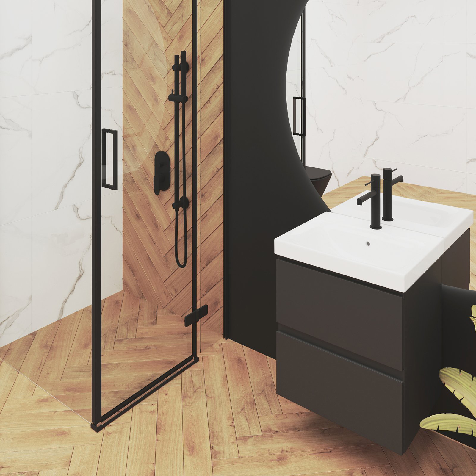Podomietková súprava SET B261 INVERTO s vaňovou a sprchovou batériou, rukoväte 2 design in 1: čierna + zlatáznačky Cersanit.