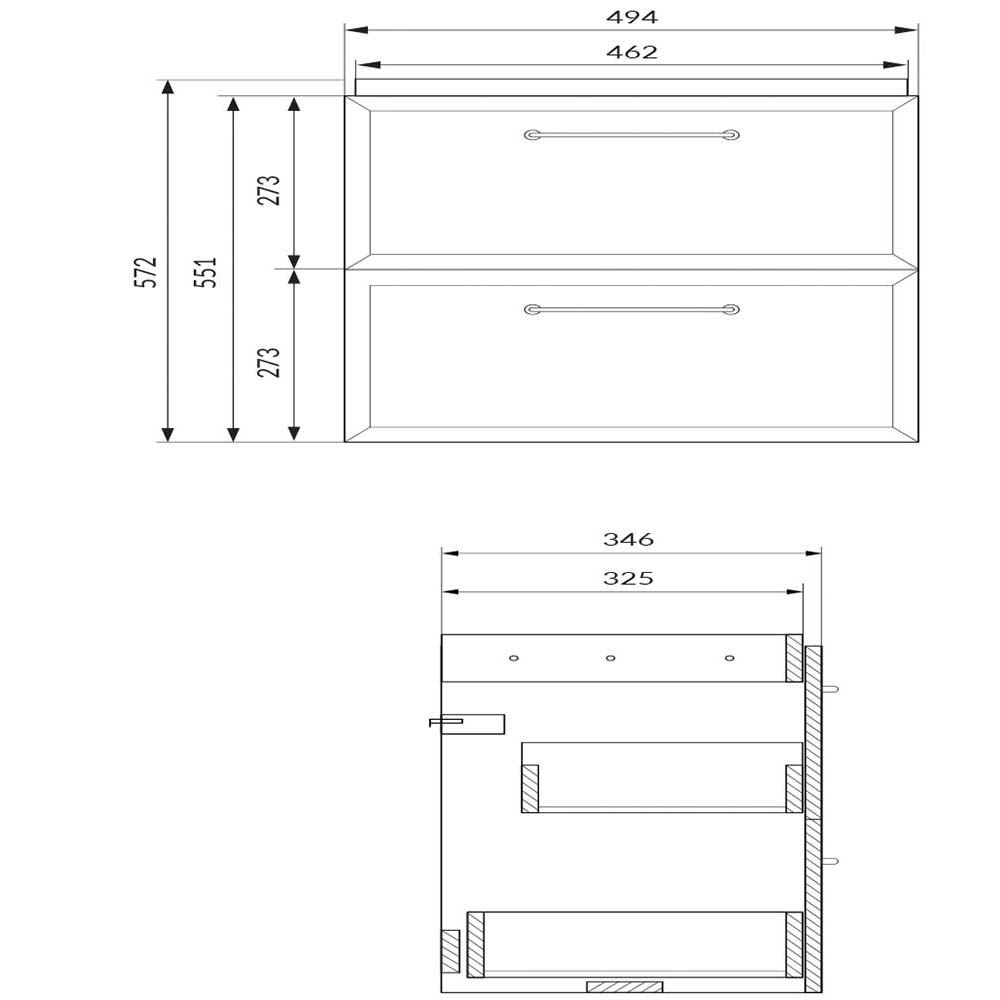 Vrátane skrinky bez rukovätí, ktoré je potrebné zakúpiť samostatne.