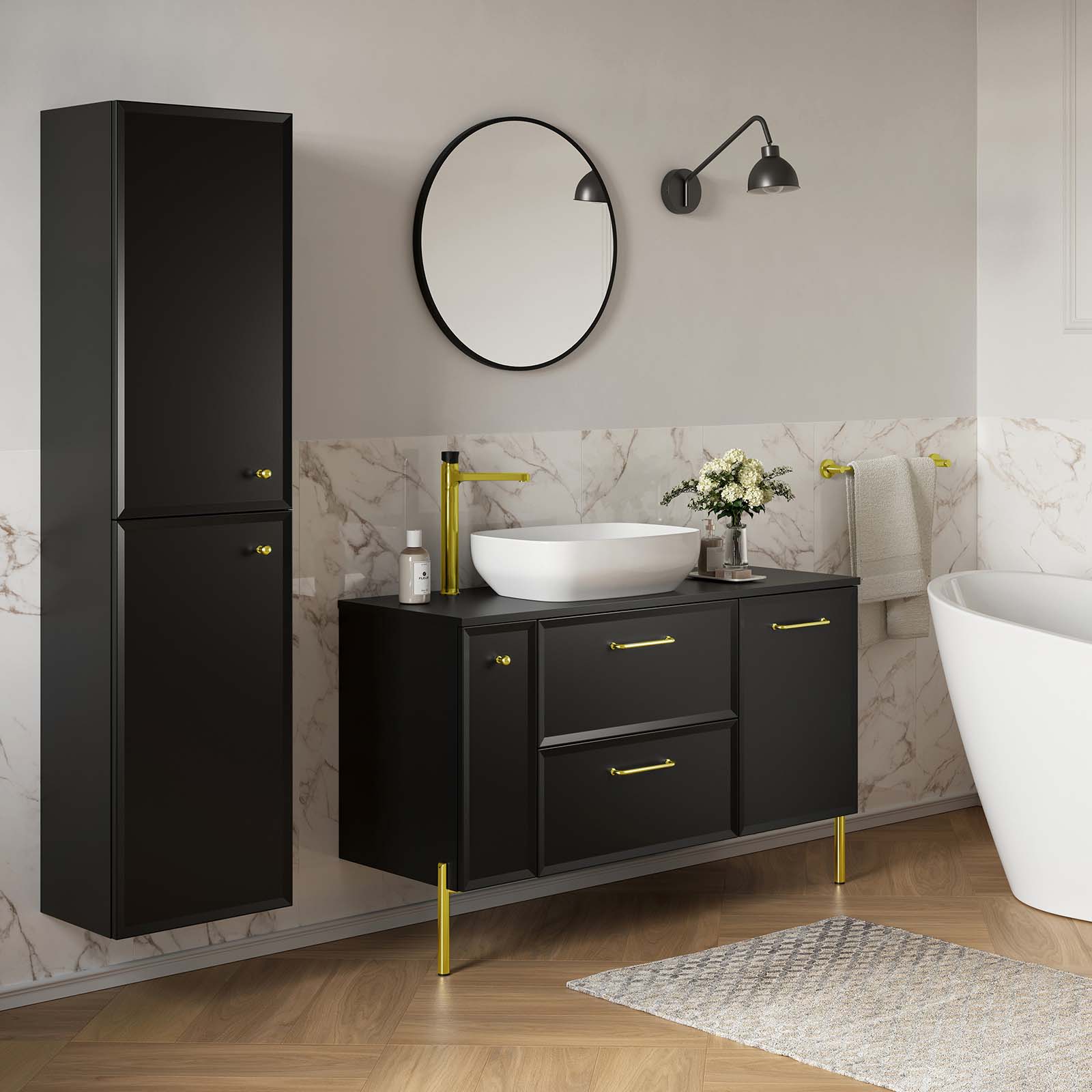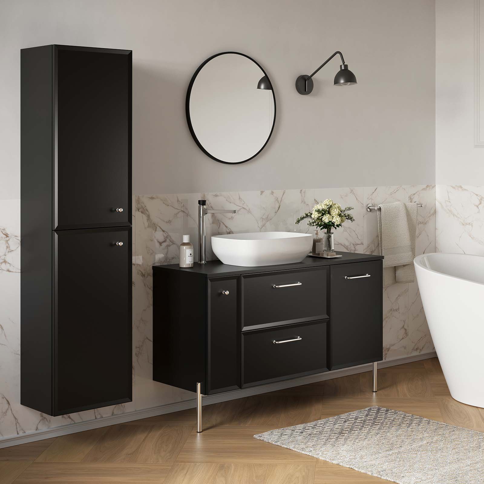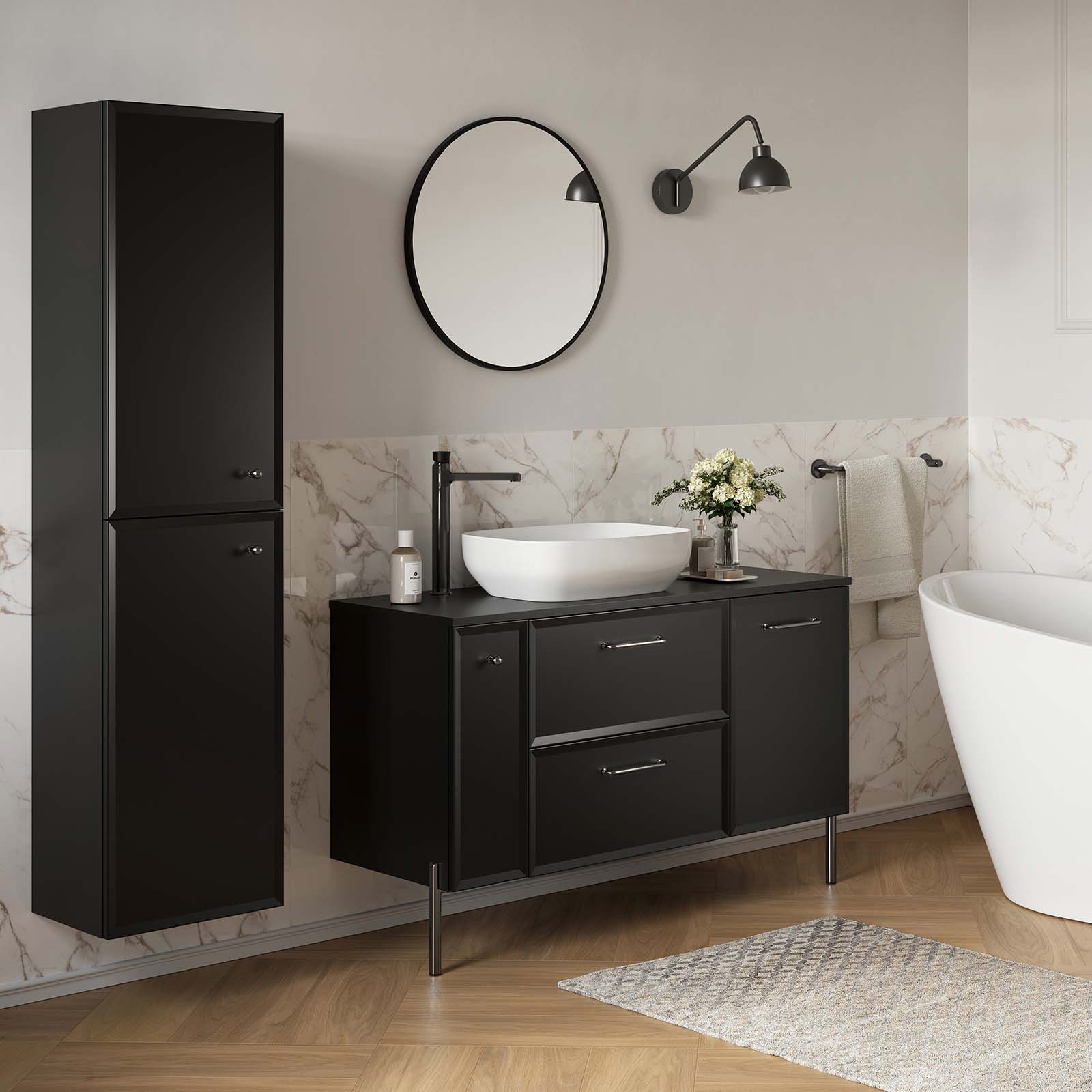 Kolekcia MILOS by Cersanit je kvintesenciou klasiky a štýlu, vytvorená pre milovníkov elegantných interiérov. Je ideálny do priestranných kúpeľní, kde sofistikovaný dizajn ide ruka v ruke s estetikou a funkčnosťou. Zlaté, strieborné alebo čierne nábytkové doplnky, ktoré dokonale ladia s čelami v odtieňoch čiernej, vytvárajú harmonický a štýlový celok. Každý detail tejto kolekcie zdôrazňuje elegantný charakter interiéru a dodáva mu jedinečný šarm. Kolekcia MILOS by Cersanit zaujme elegantnými a nadčasovými farbami, ktoré dokonale ladia s moderným a klasickým dizajnom interiéru. Čierna je synonymom luxusu a elegancie, dodáva interiéru charakter a dokonale ladí s kontrastnými prvkami.