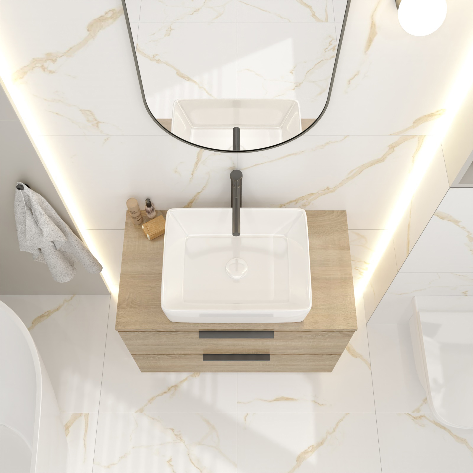 Horná časť skrine MALTA 80 dub Elegantná, funkčná a nadčasová - to je kolekcia nábytku Malta. Biely nábytok sa vďaka bezúchytkovým čelám hodí do každej kúpeľne bez ohľadu na štýl. Horná doska a ďalšie prvky vo farbe svetlého dreva budú ladiť s akýmkoľvek štýlom kúpeľne.