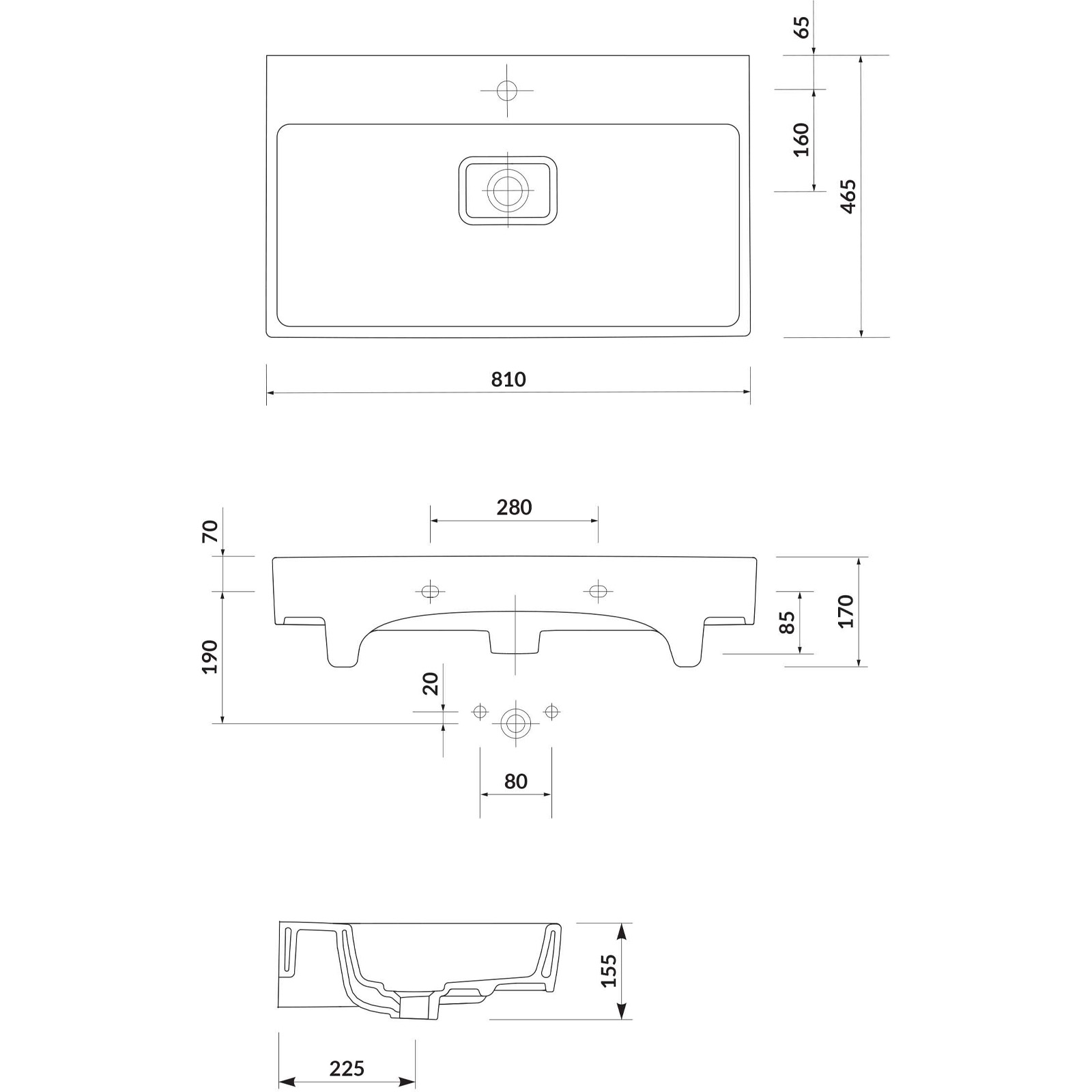 Jednotlivé nábytkové umývadlo VIRGO 80