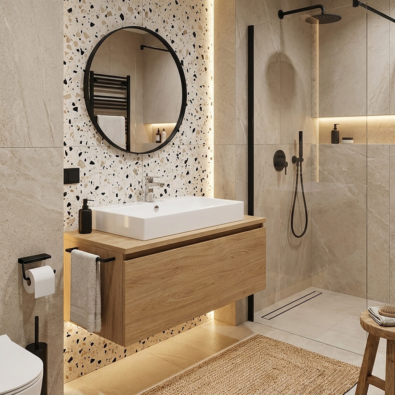 CERSANIT Nástenná sprchová batéria VIRGO termostatická čierna S951-580