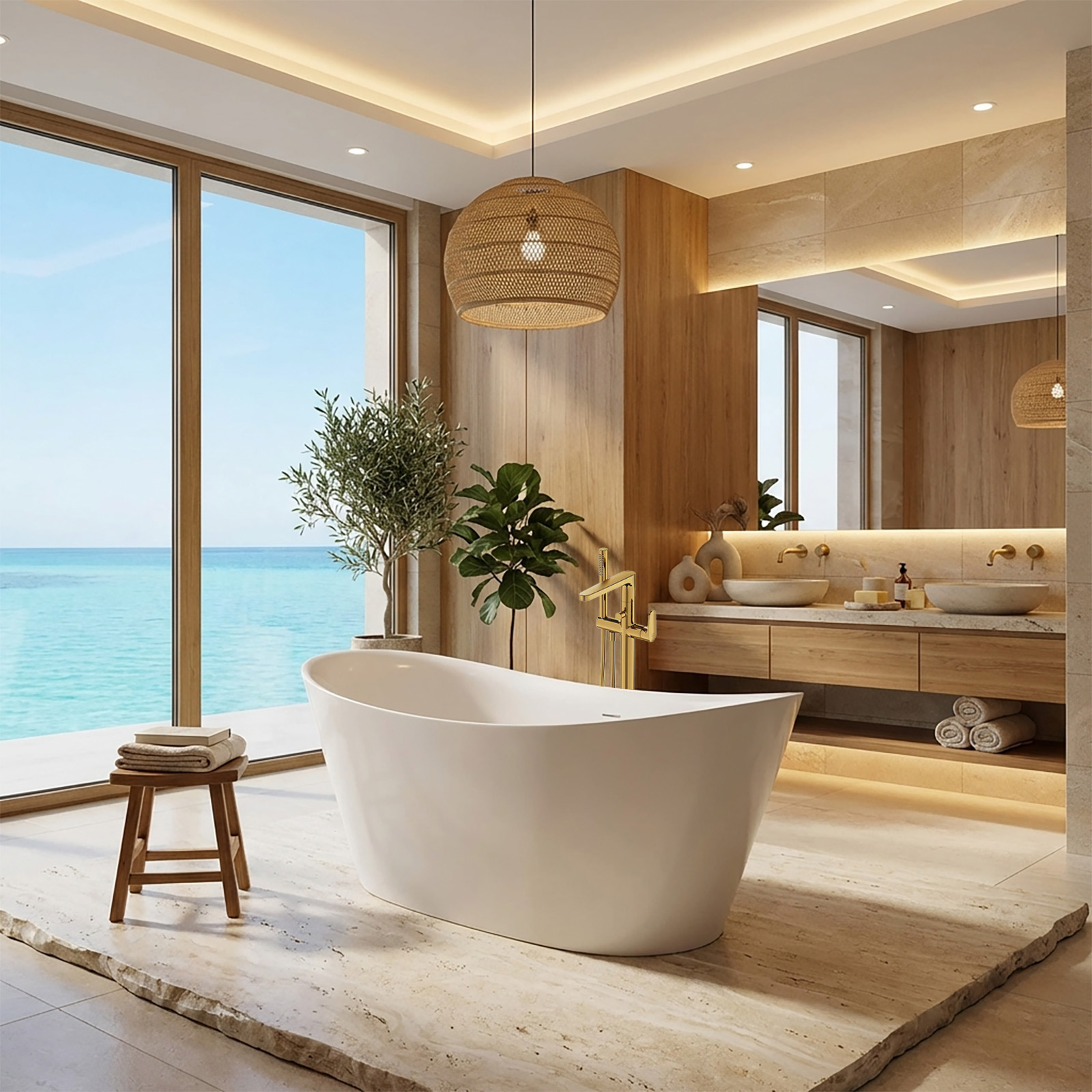 - Voľne stojace batérie: Vhodné na doplnenie elegantného vzhľadu vane ZEN DOUBLE, k dispozícii v rôznych štýloch, aby vyhovovali potrebám aj tých najnáročnejších zákazníkov.
