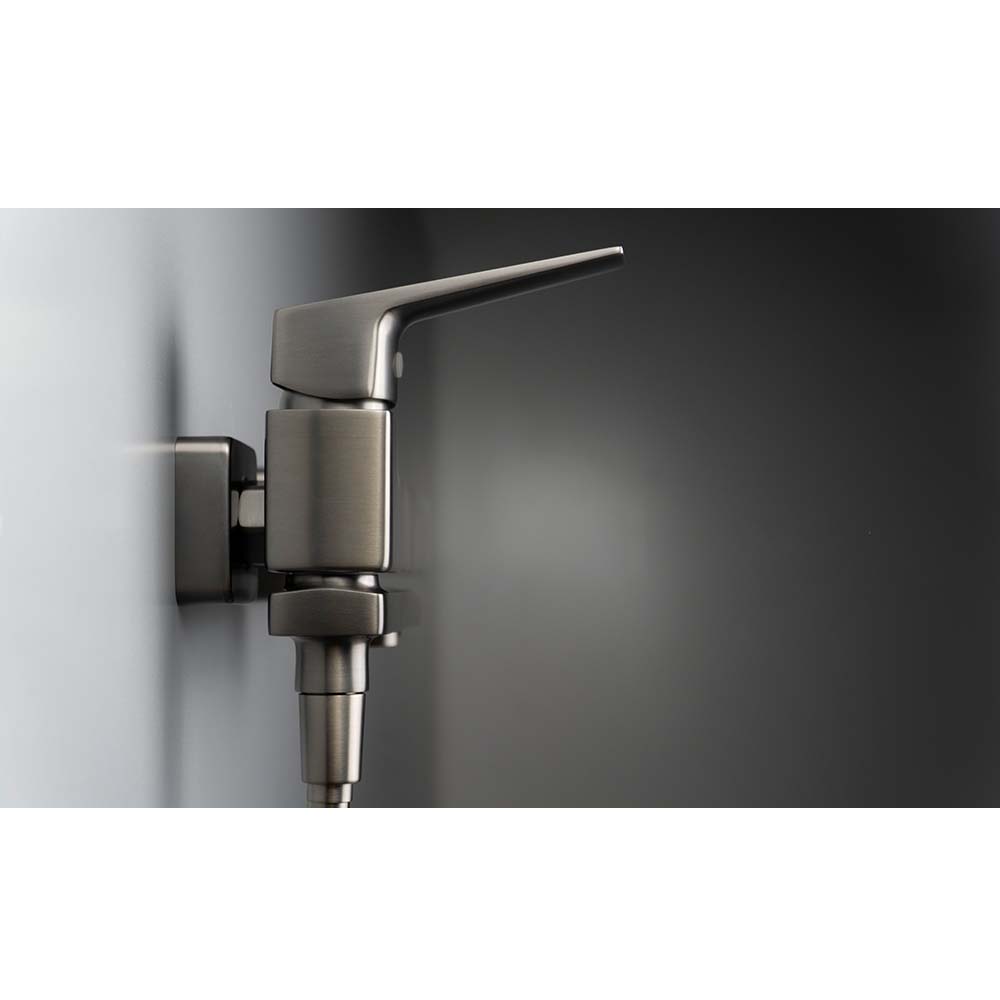 výtokom Batéria Blur do vane má skladací výtok, ktorý zároveň slúži ako funkčný spínač a umožňuje vám jednoducho prepínať vodný prúd medzi výtokom a sprchovou hlavicou. Vďaka skladateľnému dizajnu máme po zložení viac priestoru počas kúpania, čo znamená vyšší komfort pri používaní. Telo kohútika je vyrobené z odolného mosadzného materiálu, čo zaručuje jeho odolnosť a odolnosť voči korózii. Kohútik je dokončený v pôvodnej titánovej farbe, čo mu dodáva jedinečný charakter.