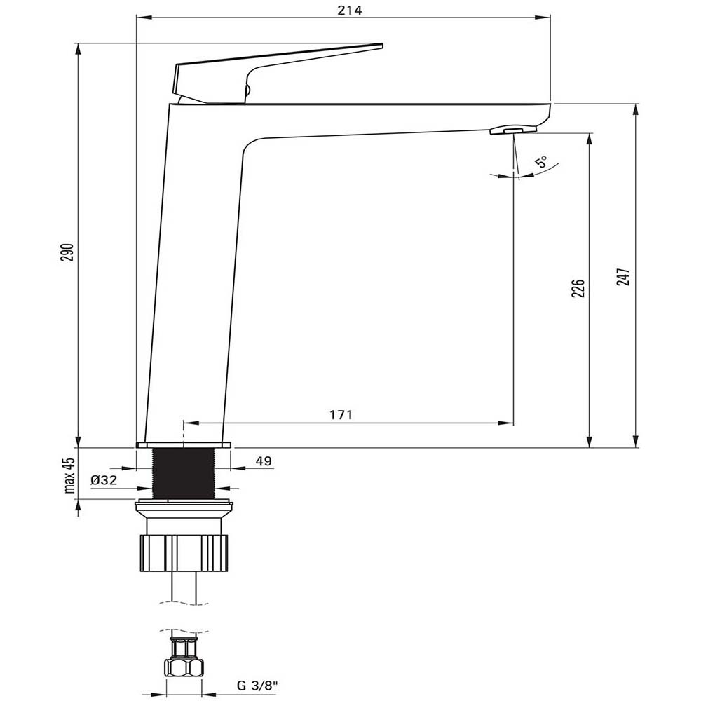 | Dosah výtoku: | 171 mm |