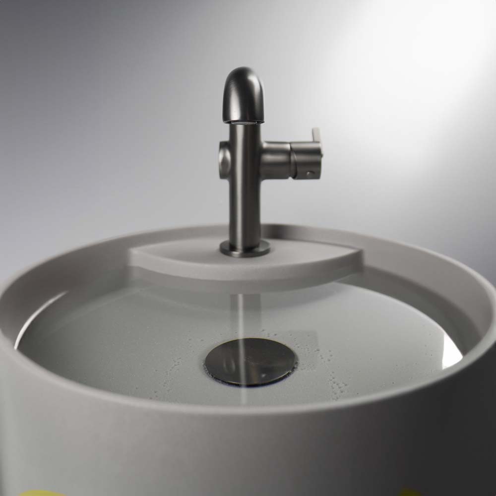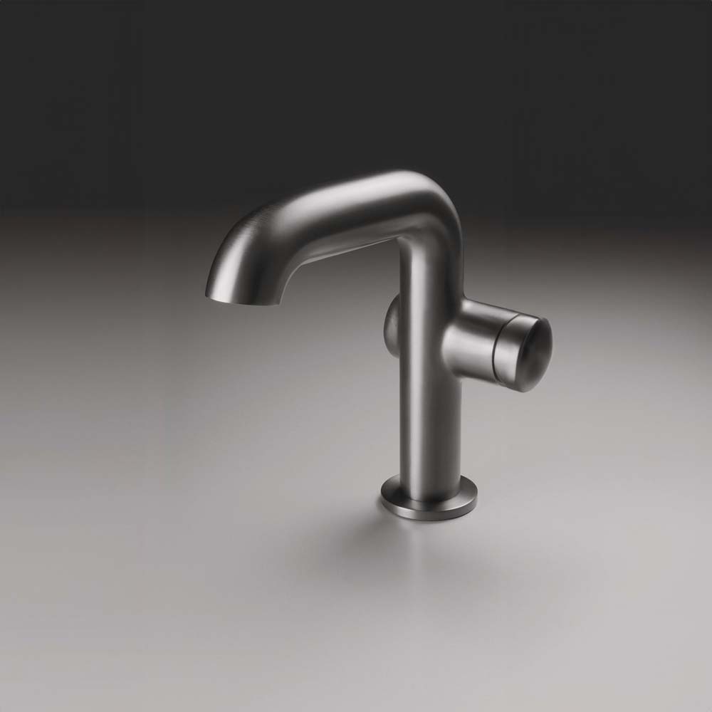 výlevom Tento model sa vyznačuje štíhlym, aerodynamickým tvarom a precízne premyslenou pákou. Bočná páka zabezpečuje, že batéria je počas každodenného používania čistá, pretože na spojkách je oveľa menej škvŕn. Jeho kockovitá rukoväť harmonicky ladí s valčekmi tela a výtokov, čím vytvára jedinečný dizajn. Silia kohútik je jednoduchý, skromný a veľmi praktický, čo z neho robí ideálny výber pre trend wabi-sabi inšpirovaný japonskou estetikou. Na druhej strane, jeho sofistikovaná geometria a široká škála farieb mu dodávajú originálny a nezvyčajný vzhľad. Batéria je dokončená v pôvodnej titánovej farbe, ktorá je kombináciou čiernej, hnedej a sivej.