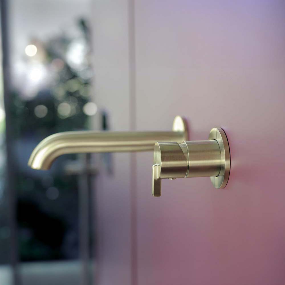 zlato Silia kohútik sa vyznačuje štíhlym, minimalistickým tvarom a starostlivo premyslenou pákou. Je vyrobený z odolného mosadzného materiálu a dokončený brúseným zlatom. Silia batéria je jednoduchá, skromná a veľmi praktická. Páka kohútika má tvar kocky, je mimoriadne dizajnérska a zároveň ergonomická. Zapustená inštalácia dodáva kúpeľni estetický vzhľad a uľahčuje jej udržiavanie čistote.
