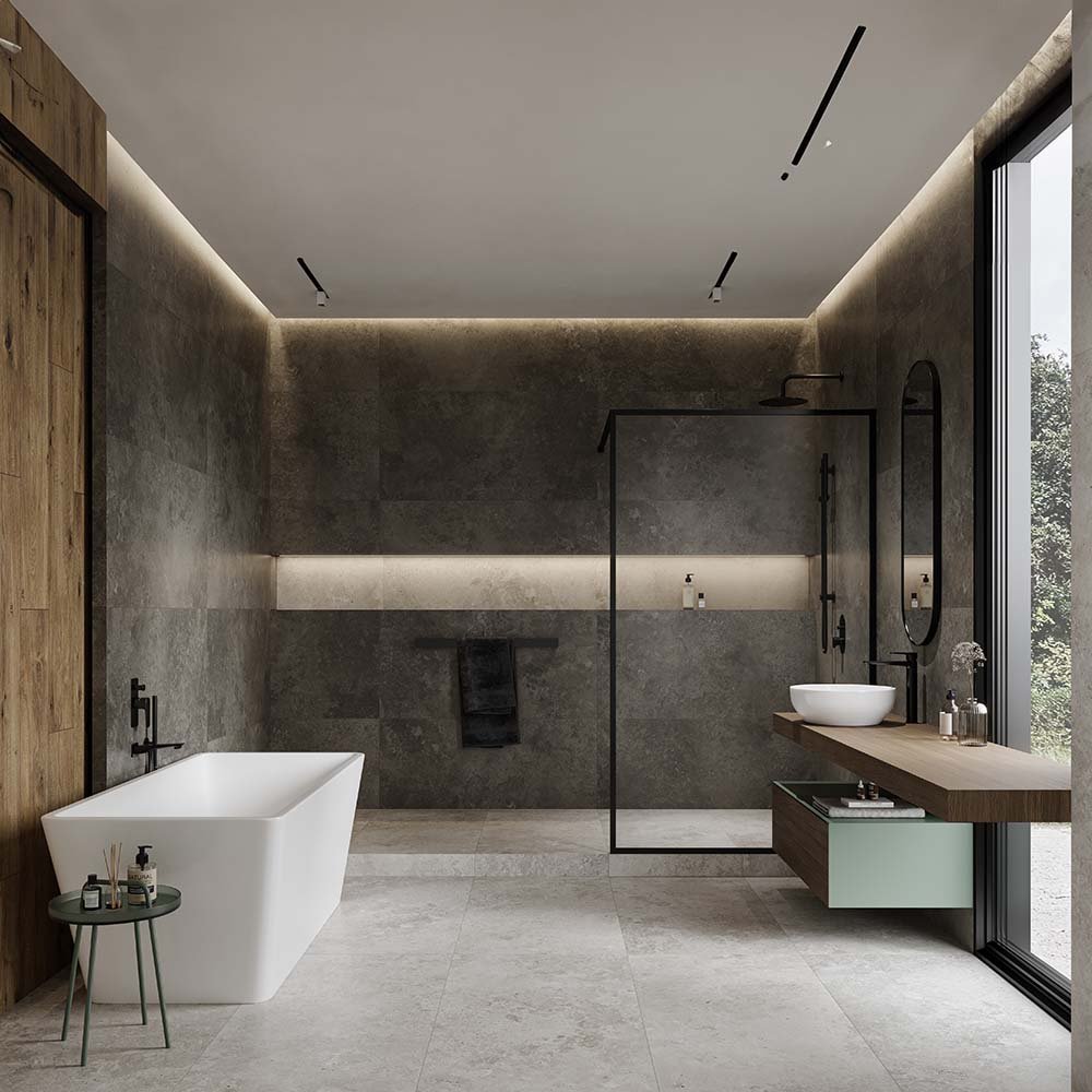 DLAŽBA CALDERA ROCK GRAPHITE/BLACK MAT 59,8X119,8 (II. AKOST). Dekoratívna porcelánová kamenina je multifunkčný a veľmi atraktívny obkladový material používaný vo vnútri budov na podlahy a steny, ako aj mimo budov ako mrazuvzdorný podlahový a fasádny material. Je to veľmi odolný a multifunkčný material.