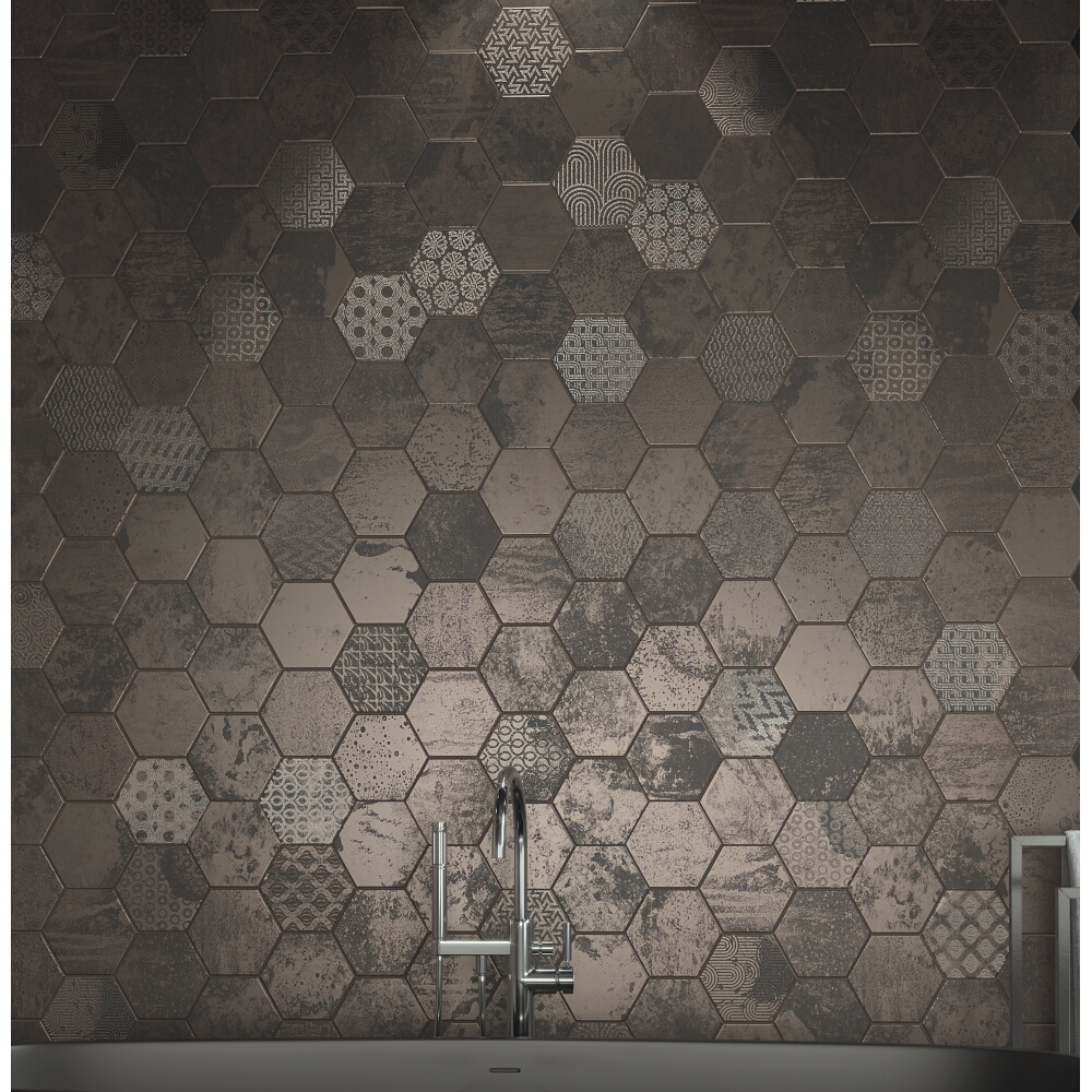 | Vzor: | Imitácia kovu, Patchwork, Šesťhranné |