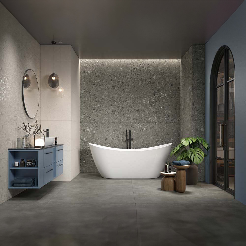 DLAŽBA TERRAZZO STONE GREY MAT 59,8X59,8 (II. AKOST). Dekoratívna porcelánová kamenina je multifunkčný a veľmi atraktívny obkladový material používaný vo vnútri budov na podlahy a steny, ako aj mimo budov ako mrazuvzdorný podlahový a fasádny material. Je to veľmi odolný a multifunkčný material.