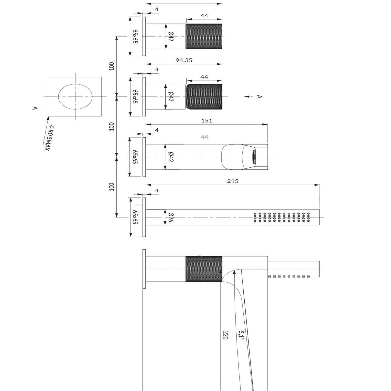 OMNIRES CONTOUR batéria do vane so štyrmi otvormi – brúsená medená CT8032CPB