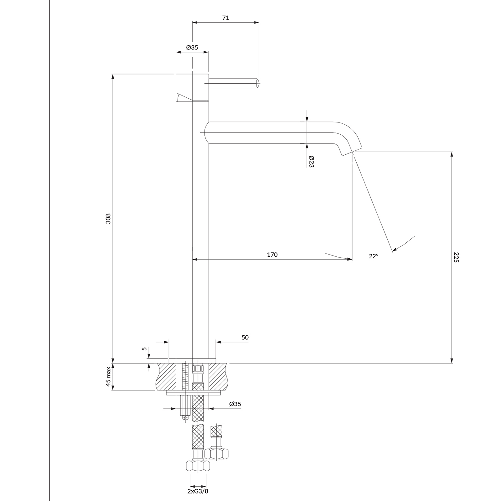 - , celková výška kohútika: 30,5 cm
