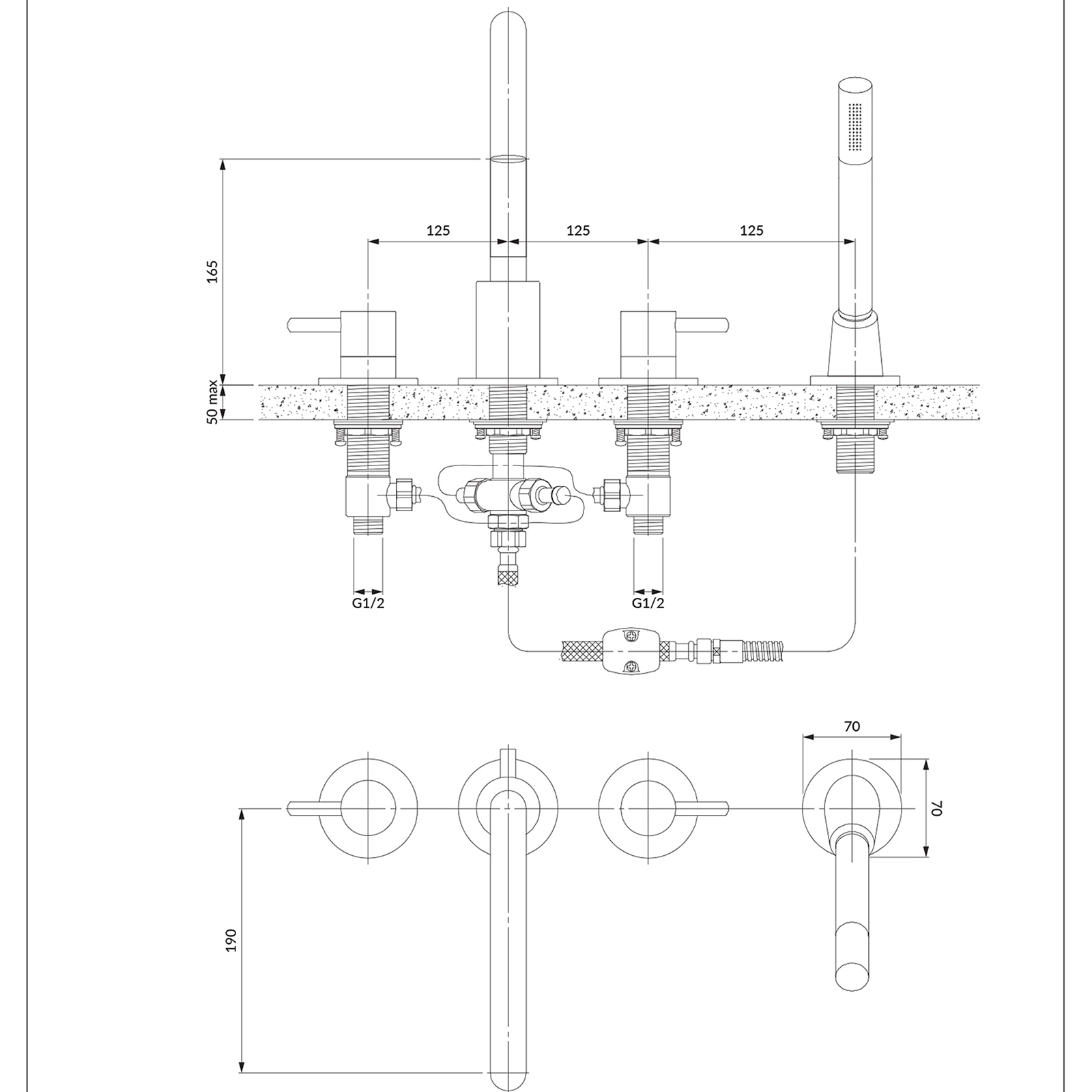 - mosadzná sprchová hadica s jednou funkciou, dĺžka: 180 cm