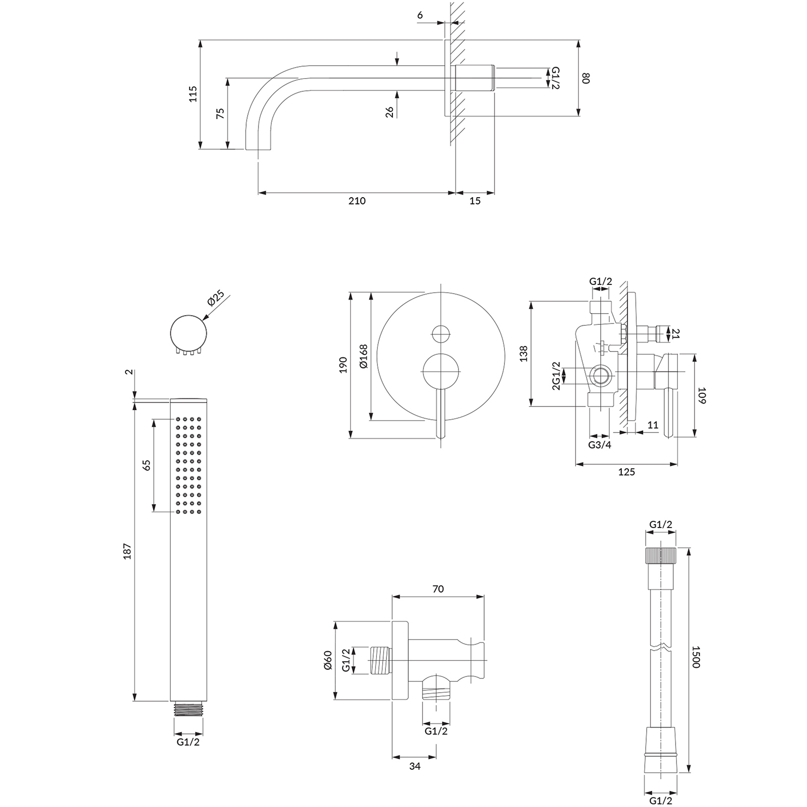 - nástenný výtok (WDYCR), rozsah výtoku: 21 cm