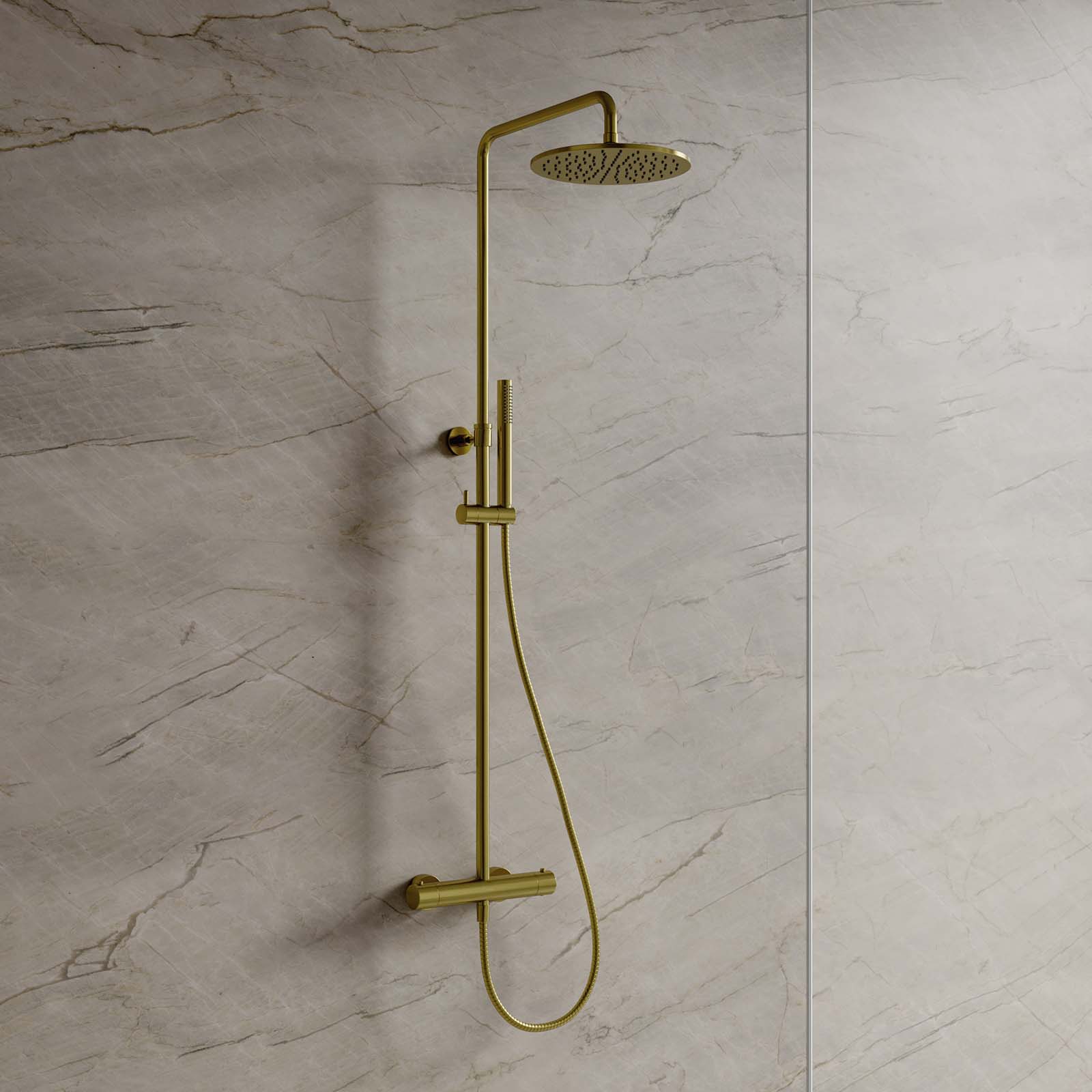 Termostatický sprchový systém Y povrchovo montované brúsené mosadzné.