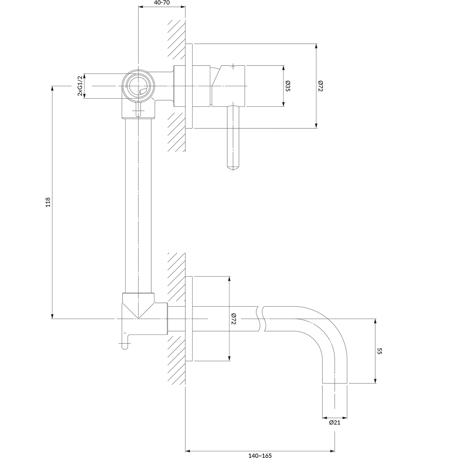 | Dosah výtoku: | 165 mm |