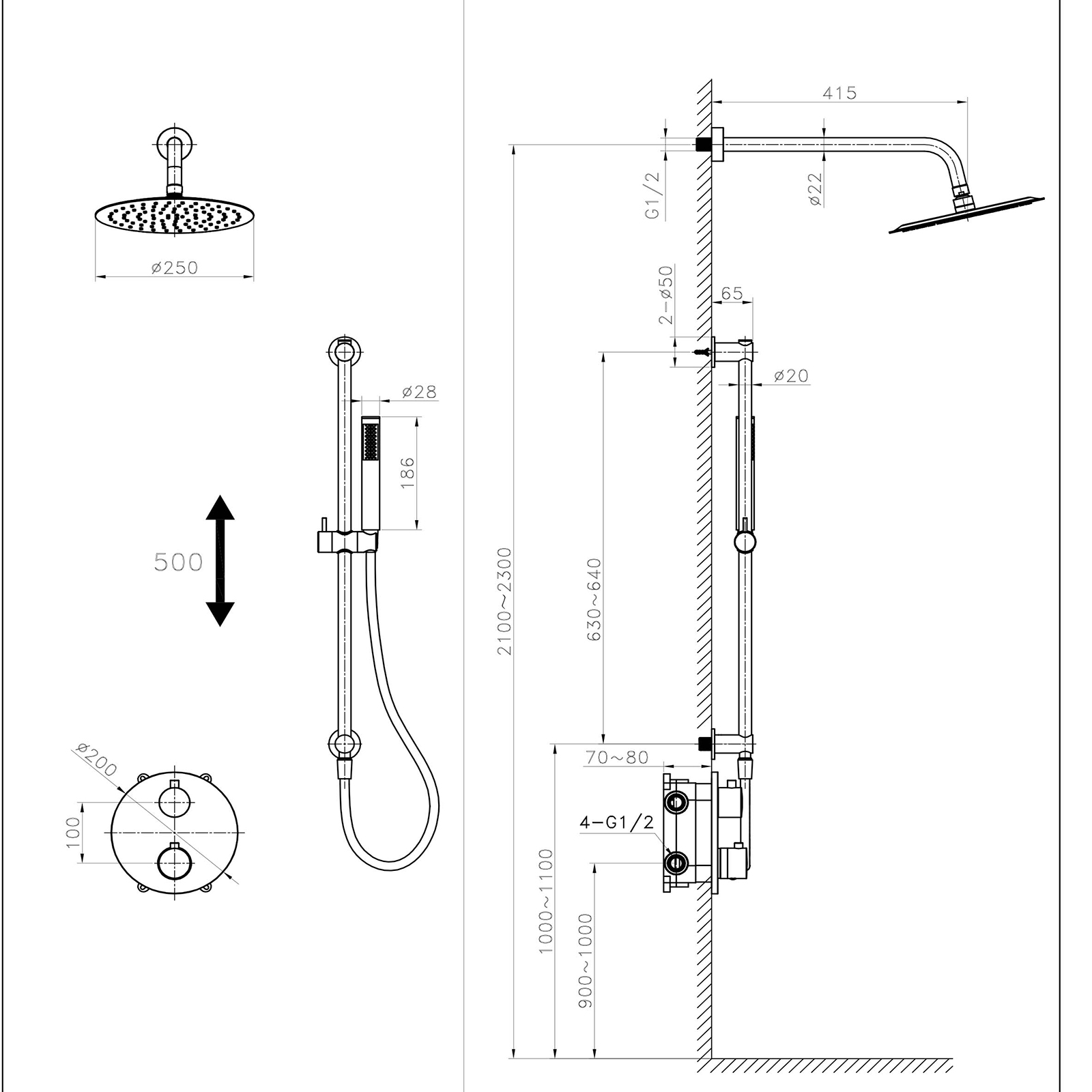 - kruhová dažďová sprcha SLIM 25 cm