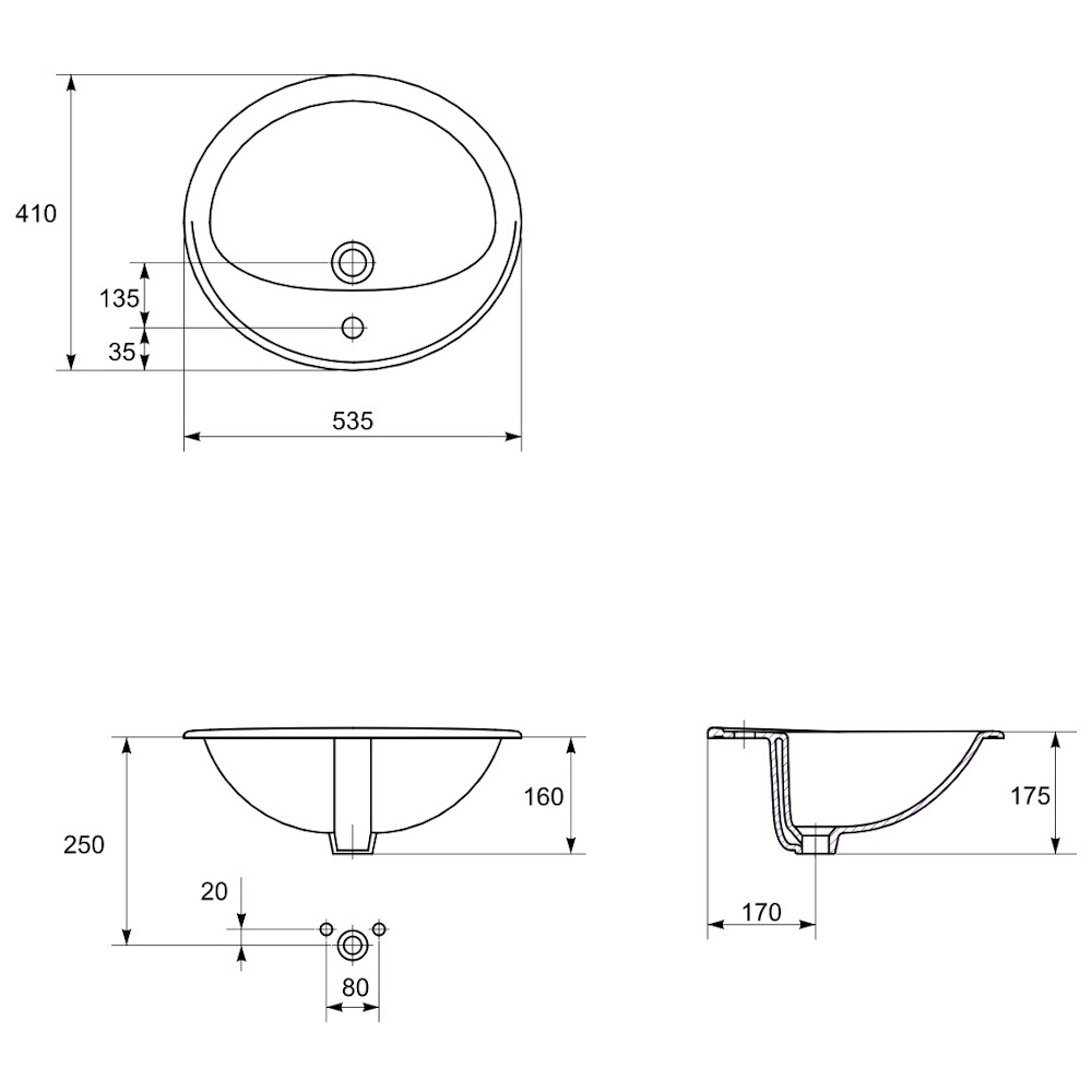 Umývadlo zabudované do pultu CALLA 54 má otvor pre batériu a prepad. Súčasťou umývadla je šablóna, ktorá vám pomôže vyrezať montážne otvory.