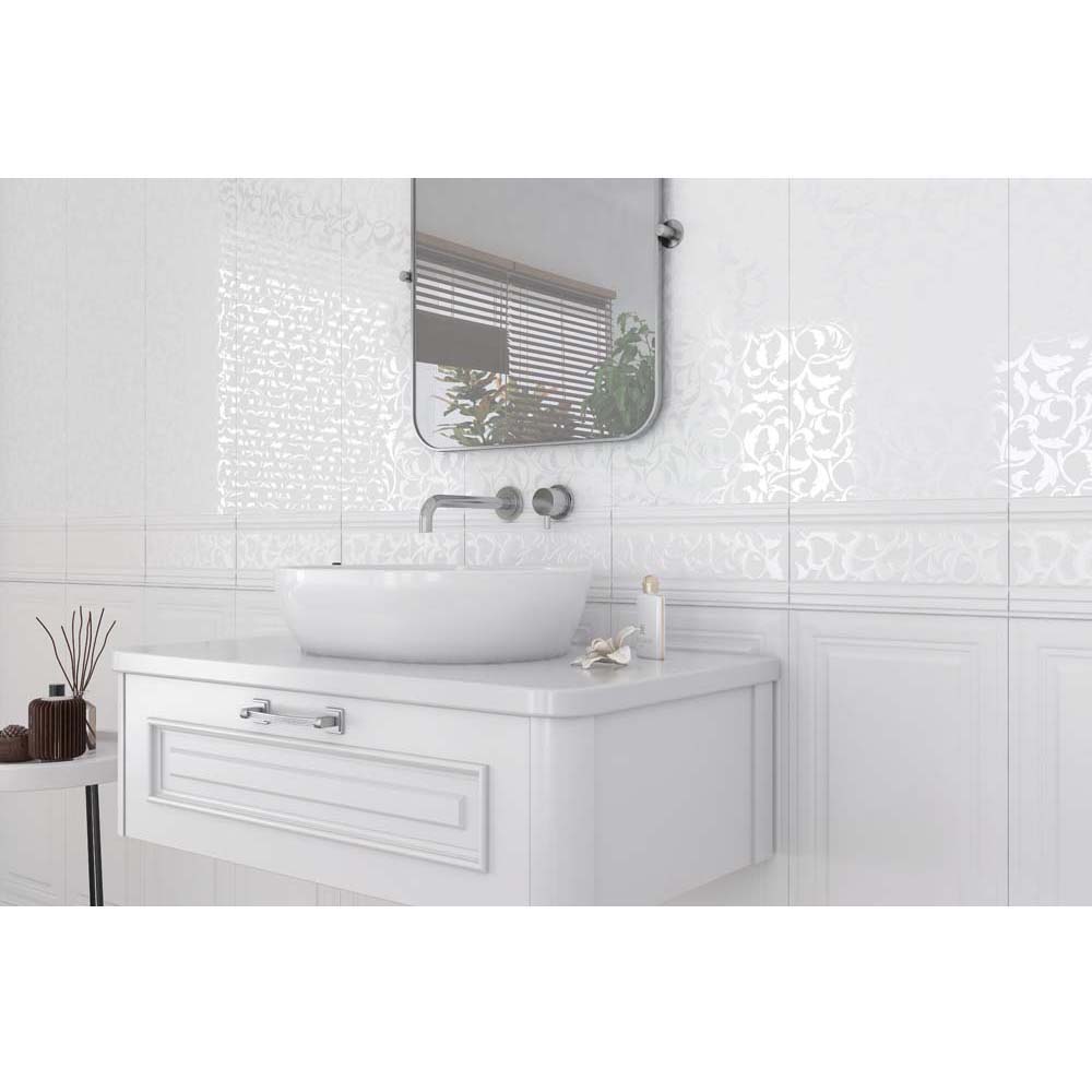 OBKLAD SERAMIKSAN VICTORIAN WHITE FLORAL MOTIF MAT 30X90