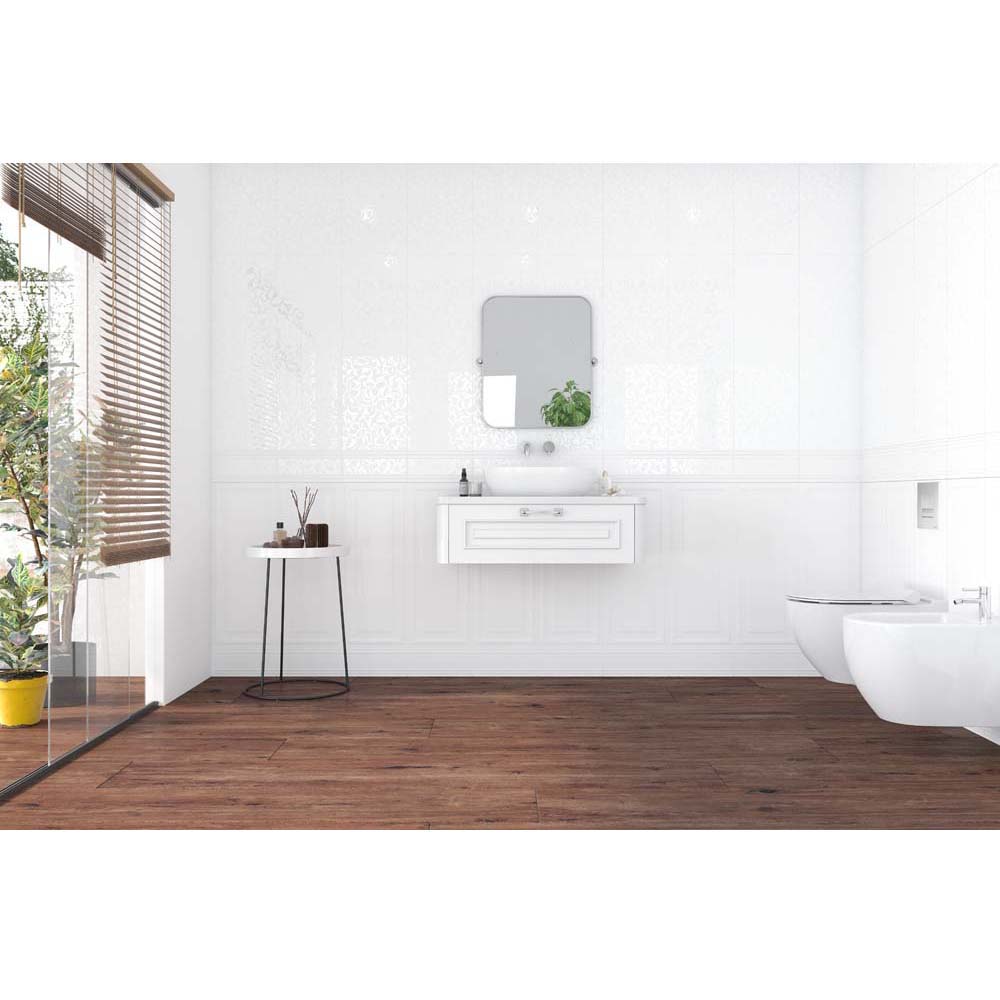 OBKLAD NA STENU VICTORIAN WHITE FLORAL MOTIF MAT 30X90. Prvá trieda.